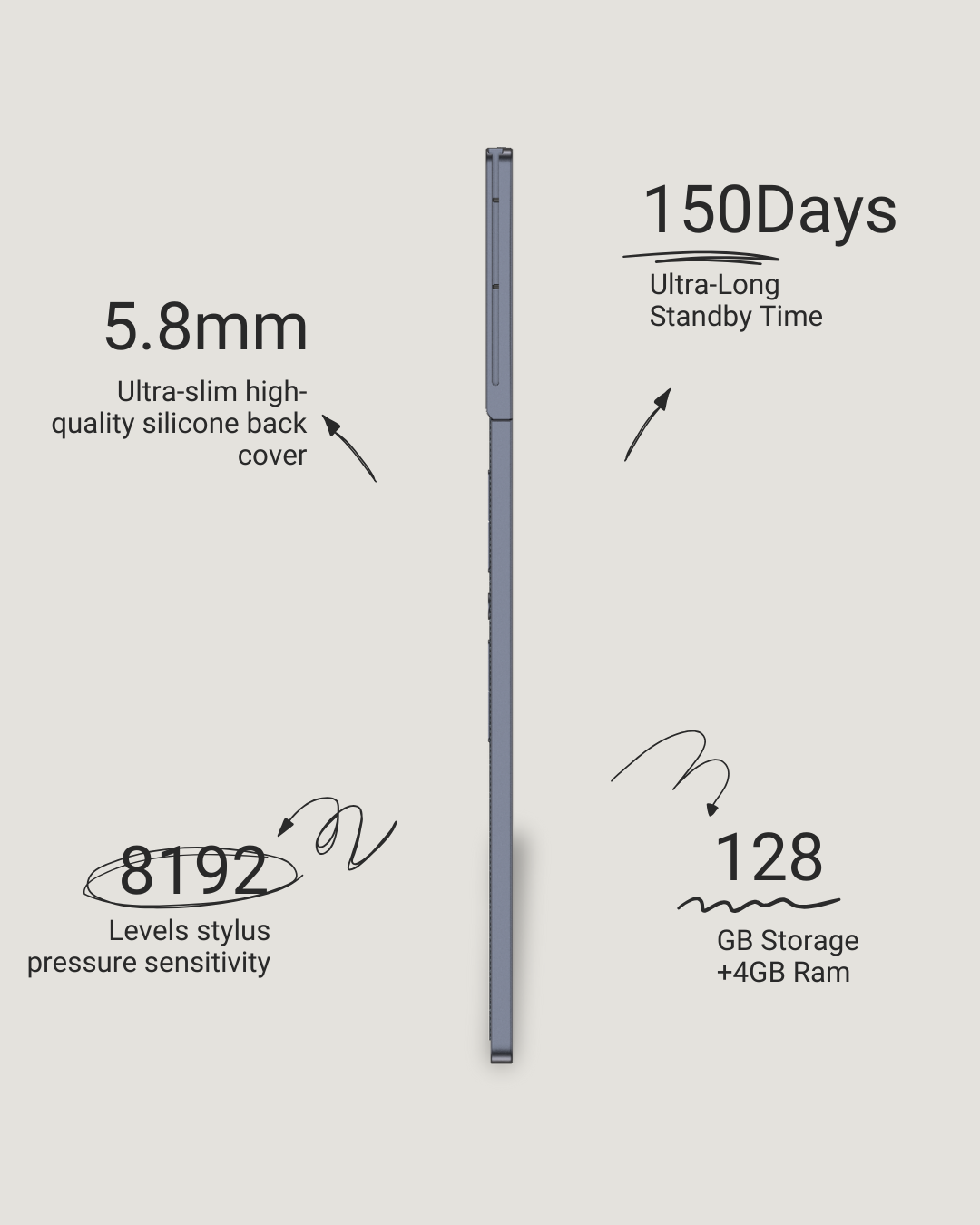 With an ultra-slim 5.8 mm body and refined, minimalist styling, Penstar eNote Pro pairs premium craftsmanship with a professional aesthetic — lightweight, elegant, and comfortable for long study, business, or creative sessions.